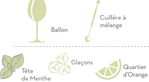 Garnir d’un quartier d’orange et d’une tête de menthe.